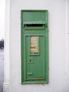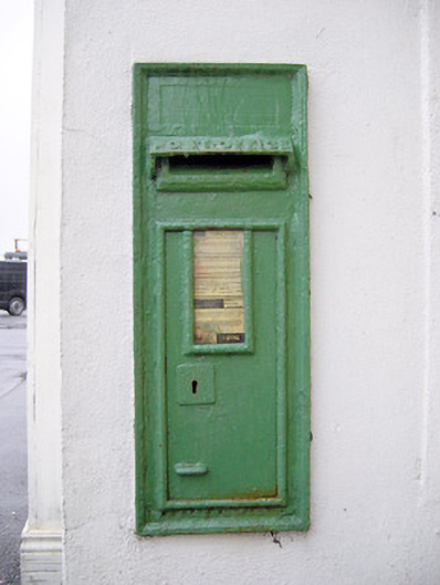 Such post boxes replaced the smaller and more modest boxes containing a 'P&T' insignia. The 'post office' design on this box indicates that the former shop may possibly have functioned as the area post office.