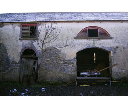 These outbuildings, formally arranged around a courtyard, constitute a fine example of Georgian demesne architecture. They were formerly part of the Kilballyowen demesne, whose house which had an early castle built into it, was demolished in the 1970s. The ranges are well composed and constructed of high quality materials; features such as the cut limestone voussoirs and walls to the carriage arch attest to skilful craftsmanship. The outbuildings retain their original form and character and remain an important element of the architectural heritage of the area.