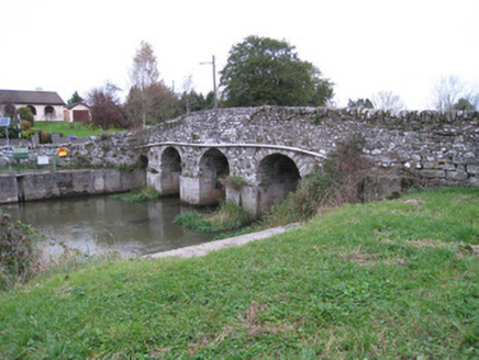 This four-arch road bridge, spanning the Morningstar River, is a notable example of early nineteenth-century engineering skills and craftsmanship. Despite alterations, the bridge retains its rhythmical silhouette, which forms a prominent feature within the village of Athlacca.