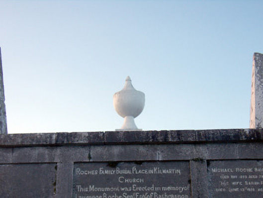 A pair of burial plots of the Roche family. The first carries three lengthy inscriptions commemorating Reverend Patrick Roche (d. 1786) '[who] was Vicar General of the Limerick Diocese and Parish Priest of Kilmallock' and Reverend John Roche (d. 1806) '[who] was Parish Priest of St. Patrick & Monaleen Limk. Diocese'. The second, repurposing the remains of the ruined Ardkilmartin Church [SMR LI040-088001-], carries a cut-limestone plaque inscribed: "Erected by Michael Laurence/Roche Senr. In memory of his/Son Michael Roche Junr./Solicitor who departed this/life on the 24 day of May 1840/aged 28 years and also of his/beloved wife Mary Roche/alias Lynch who died on the/30 day of May 1852 aged 70 years".