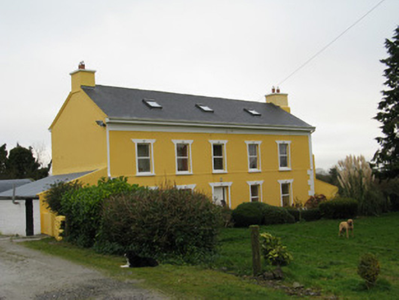 Detached five-bay two-storey with dormer attic house, built c. 1840, with extension to rear (north). Pitched artificial slate roof with rendered chimneystacks, uPVC rainwater goods and recent rooflights. Rendered walls throughout with rendered plat bands and quoins to front (south) elevation. Square-headed window openings with rendered sills and surrounds throughout, having uPVC casement windows. Square-headed door opening with rendered surround and uPVC door to front elevation. Recent concrete outbuilding with pitched corrugated-iron roof to west. Set within own grounds.