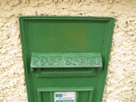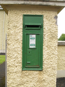 An interesting roadside feature which was manufactured by the W.T Allen and Company Foundry (1881-1951), who were based in London. This letter box does not feature a royal crown and insignia motifs that are often associated with post boxes manufactured by this London based company, however it appears that this cipher may has been removed following the formation of the Irish Free State.