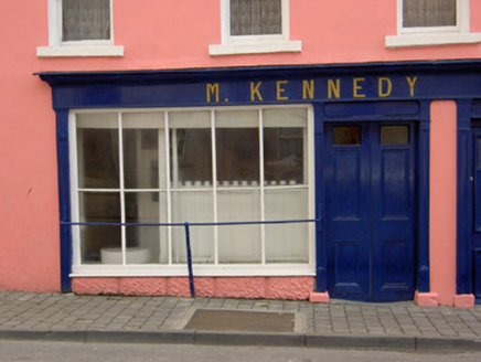 The modest facade of this terraced house and shop is enhanced by its decorative quoins and sash windows. The shopfront is particularly notable with its simple design. The cow bar to the display window reflects a past tradition of market day, something which is becoming increasingly rare in Irish towns and villages.