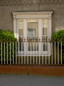 The decorative render detail enlivens and articulates the façade. This decorative detail is repeated on the adjoining building to the north and was probably executed by the same craftsman. Together with the outbuildings and carriage arch, this building forms an interesting group of domestic structures in an urban setting.
