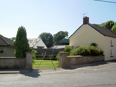 Detached two-storey vernacular house, built c.1800, with four-bay ground floor and three-bay first floor. Pitched slate roof with red brick chimneystacks. Painted rendered walls with square-headed window openings having two-over-two pane timber sliding sash windows and painted stone sills. Square-headed door opening with replacement timber door. Yard behind house with outbuildings having pitched slate and corrugated-iron roofs and rendered walls, and iron barn.