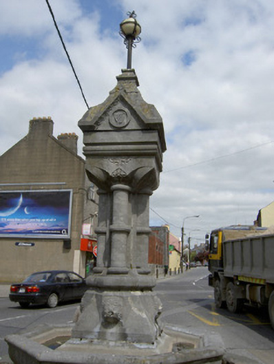 This Hiberno-Romanesque-style fountain occupies a prominent site at the west end of Cashel’s main thoroughfare and is the focal point of Lower Gate Square. It displays evidence of fine stone crafting and carving and is of well executed and interesting design. It incorporates classical elements and motifs, such as lion masks and colonnettes, as well as harp motifs, which are typical of the Celtic Revival and nationalist iconography. The wrought-iron lamp standard is another notable feature.