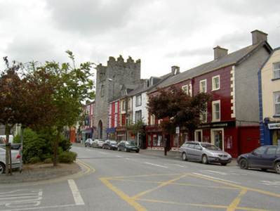 End-of-terrace two-bay three-storey house, built c.1840, now also in use as shop and having shopfront to ground floor. Pitched artificial slate roof with rendered chimneystacks, timber bargeboards and cast-iron rainwater goods with decorative hopper. Painted lined-and-ruled rendered walls with roughcast rendered walls to southwest gable. Square-headed window openings with render surrounds, painted stone sills and one-over-one pane timber sliding sash windows. Shopfront comprising timber fascia, square-headed door opening with render surround, timber panelled door and overlight, square-headed shop entrance opening with render surround and glass door, latter entrance flanked by square-headed openings with timber surrounds and fixed timber windows. Four-bay two-storey addition to rear.