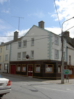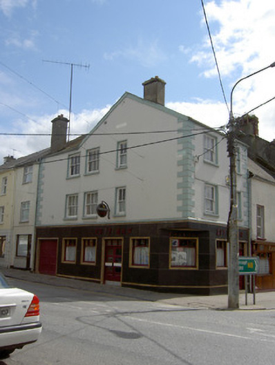 This building occupies a prominent corner site at the former Dublin entrance to the main street. Its façade is enlivened by the render quoins and window surrounds, and the tiled pub-front, the latter an increasingly rare feature in Irish towns.