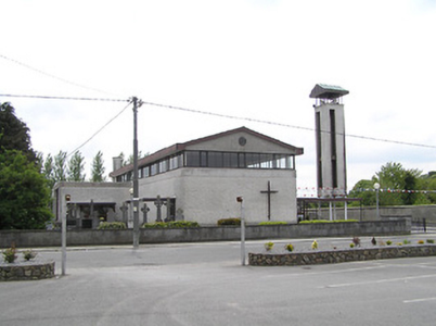 This candidly modern structure has a strip of clerestory windows on three sides of the church, giving the roof the appearance of floating, and providing a light and airy interior. The attempt of Gothic cathedrals to provide much light from large windows has reached its ultimate conclusion here in modern materials. The use of steel to support the belfry roof echoes the conceit of the floating roof. The church replaced an earlier structure dating from 1839. Visible from a considerable distance, it is a rare example of frankly twentieth-century architecture in County Tipperary.