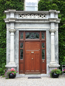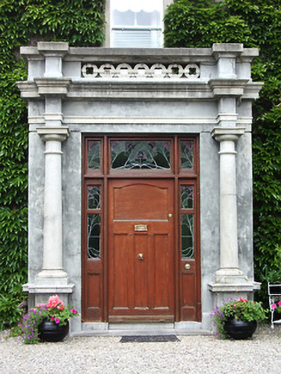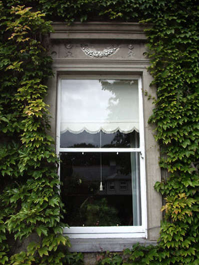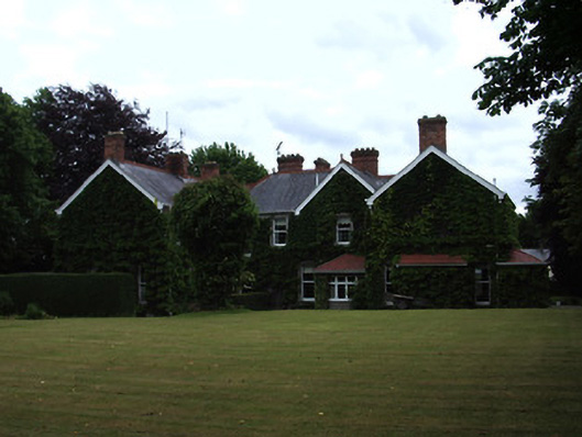 Detached house, built c.1860, comprising four-bay two-storey front block with advanced east bay and having additional two-storey blocks to rear, easternmost being multiple-bay, centre being L-plan three-bay and west-most being recessed from front block. Additional single-storey extensions and porches to west and rear elevations. Hipped and pitched slate roofs with terracotta ridge tiles, cresting and finials, red brick chimneystacks, cast-iron rainwater goods, timber bargeboards and finials to gables. Roughcast rendered walls, having render eaves course with swag decoration to front elevation. Square-headed window openings, paired to advanced bay and to west gable, with moulded render surrounds, some having moulded cornices and swags to friezes. Timber sliding sash one-over-one pane windows throughout. Rendered entrance porch with pierced parapet, moulded entablature, Tuscan-style columns on pedestals, sill course to side windows continuous with base of columns. Timber panelled door with decorative glass to overlight and side-lights. Porch to west elevation supported on timber posts with braces to hipped tiled roof. Red brick boundary wall with gabled rendered piers, wrought-and cast-iron railings and double-leaf gates.
