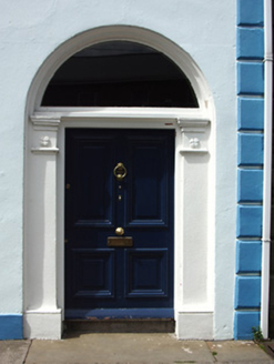 End-of-terrace four-bay two-storey house, built c.1840, with multiple-bay two-storey return. Hipped artificial slate roof with rendered chimneystack. Painted rendered walls with render quoins and painted rendered plinth. Square-headed window openings with painted stone sills, recessed moulded surrounds and timber sliding sash one-over-one pane windows, timber panelled shutters visible to interior. Round-headed entrance opening with recessed moulded surround and plinth blocks and render pilasters with four-leaf clover motif, timber panelled door and plain fanlight