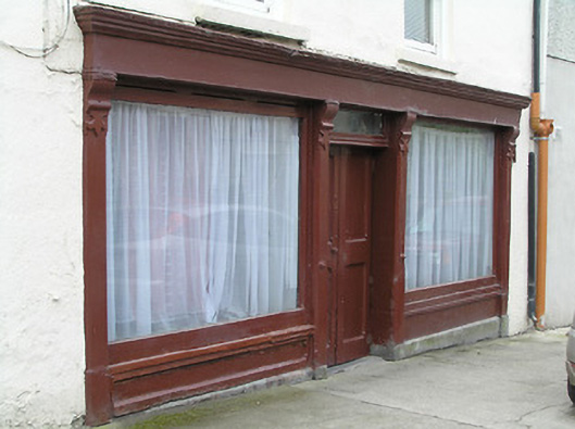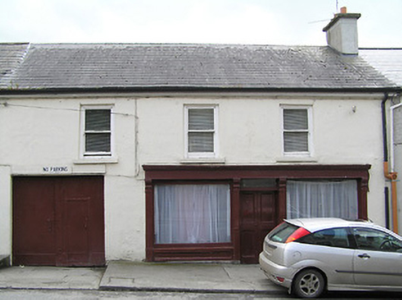 Terraced three-bay two-storey house, built c.1900, with disused shopfront and integral carriage archway to ground floor. Pitched artificial slate roof with rendered chimneystack. Rendered walls with limestone plinth to shopfront. Square-headed one-over-one pane timber sliding sash windows. Render shopfront comprises pilasters with decorative brackets, plain fascia with moulded cornice, rendered stall riser, panelled to one side and centrally-placed timber panelled double-leaf door with plain overlight, flanked by display windows. Square-headed carriage entrance with metal doors.