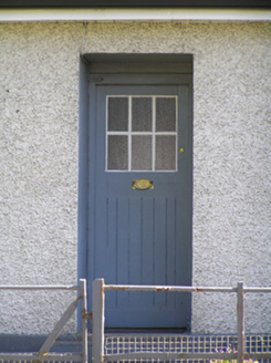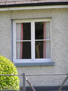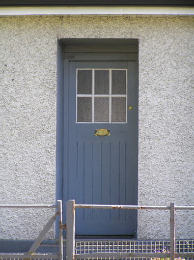 Terraced three-bay single-storey house, dated 1933, with recent flat-roofed single-storey extension to rear. Pitched slate roof with rendered chimneystack. Painted wet dashed walls with smooth rendered plinth and carved limestone date plaque. Square-headed openings with double timber casement windows with painted concrete sills, and timber battened door, paned to upper half. Garden to front, with cast-iron railings and pedestrian gate to site boundary.