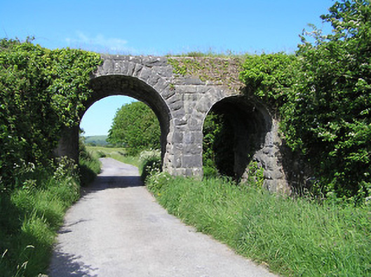 Double-arch rock-faced limestone bridge that formerly carried Thurles to Clonmel branch railway line over minor road and tributary of Clashawley River, built 1879, with buttressing walls to east and west elevations, now disused. Round arches, that over river being lower and narrower, with rock-faced limestone voussoirs, piers and parapet walls and with cut limestone soffits.