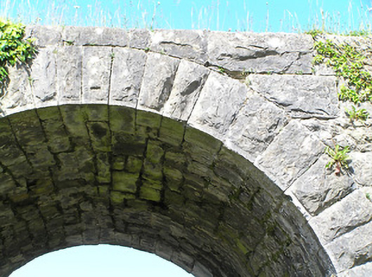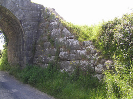 Although now disused, with grass growing over the railway tracks, this is nonetheless an imposing feature on Jesuit's Walk. A reminder of the industrial heritage of County Tipperary, it is typical of many railway bridges in Ireland in its heavy rustication, giving an impression of strength and power. Its form is unusual, however, being asymmetrical in elevation, with the arch over the river being narrower and lower. The smooth finely dressed stones to the soffits provide pleasing textural contrast to the rock-faced rustication of the voussoirs and pier walls.