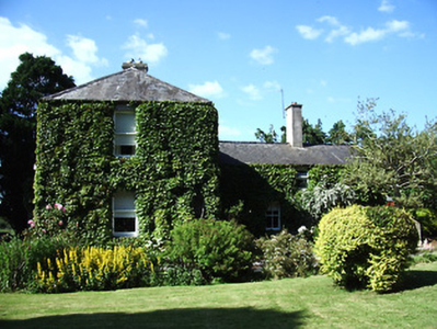 Detached three-bay two-storey house, built c. 1860, with lower two-storey rear return, lean-to extension to rear and with flat-roofed porch to front elevation. Slate roof, hipped and with rooflights to main block and pitched to return, with rendered chimneystacks, and cast-iron rainwater goods. Rendered walls with plinth course. Square-headed windows with rendered sills and timber sliding sash one-over-one pane windows throughout, including porch, with single two-over-two pane and some barred windows to south elevation of return. Square-headed entrance opening with timber panelled door and concrete step. Replacement uPVC windows and door to rear elevation of main block, gable of return and to extension. Rendered capped piers and boundary wall, with wrought-iron double-leaf gates. Set in farmland.