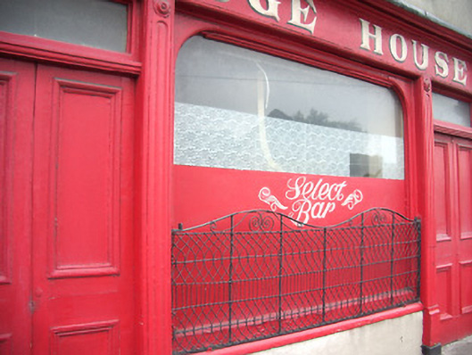 Terraced two-bay three-storey house, built c. 1820, with pubfront to ground floor and having two-storey lean-to addition to north-west with two-bay ground and one-bay first floor. Hipped slate roof with overhanging eaves, rendered and red brick chimneystack, and cast-iron rainwater goods. Rendered walls with sandstone quoins to north end, and stone plinth course. Square-headed timber sliding sash windows with concrete sills, three-over-six pane to top floor, one-over-one pane to first, with three-over-three pane and two-over-two pane to addition. Timber pubfront has moulded cornice, decorative consoles with scrolled brackets, hand-painted lettering to fascia, and panelled pilasters. Centrally-placed pseudo-three-centered arch fixed timber display window with render stall riser and wrought-iron window guard, flanked by two square-headed entrance openings with timber panelled double-leaf doors with overlights.