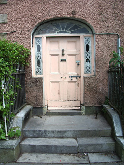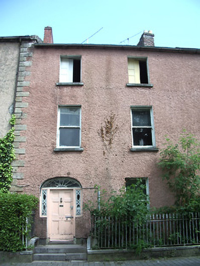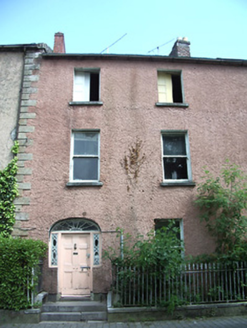 Terraced two-bay three-storey over basement house, built c. 1830. Pitched slate roof with eaves course, red brick chimneystack and cast-iron rainwater goods. Painted roughcast rendered walls with cut sandstone quoins to north end. Square-headed window openings with limestone sills and timber sliding sash one-over-one pane windows, windows missing to second floor and remains of three-over-six pane windows to rear. Timber panelled shutters to interior of windows. Segmental-headed entrance opening, with recessed timber panelled door, cobweb fanlight and sidelights with decorative glazing, accessed by limestone steps. Rendered plinth with cut limestone coping and wrought-iron spearhead railings to basement area.