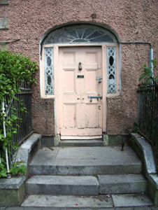 This house is one of an elegant terrace of similar houses. A railed area to the basement provides privacy from the street, and access by a flight of steps creates an air of grandeur. High quality craftsmanship is apparent in the fanlight and sidelights. This terrace forms a significant part of the town's domestic architectural heritage and the quadrant arrangement remains of this formerly gated street.