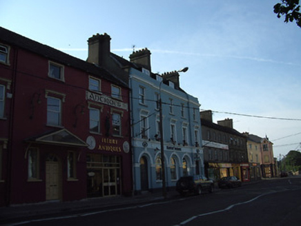 Terraced five-bay three-storey building with dormer attic, built c. 1880, with slightly advanced end bays, and having dormer windows to attic. Pitched slate roof, flat roofs to dormers, rendered chimneystacks, and cast-iron rainwater goods. Painted rendered walls, with moulded cornice to parapet, moulded cornice and frieze to ground floor, and plinth course. Square-headed window openings to upper floors, with timber sliding sash one-over-one pane windows. Dressed limestone sills to second floor and moulded bracketed cornices and moulded surrounds to first floor windows. Arcaded round-headed openings to ground floor, with continuous hood moulding with keystones and pilasters with moulded imposts. Recessed fixed timber windows with margined glazing and dressed limestone sills. Timber panelled double-leaf doors with fanlights, accessed via stone steps.