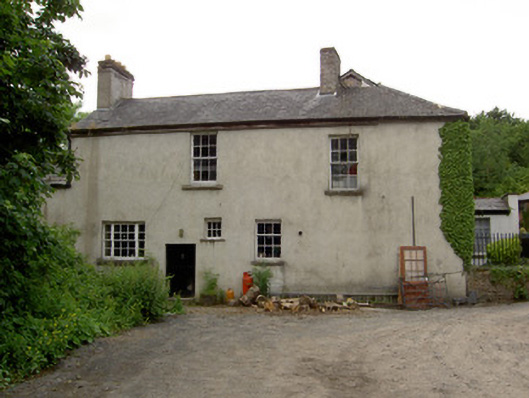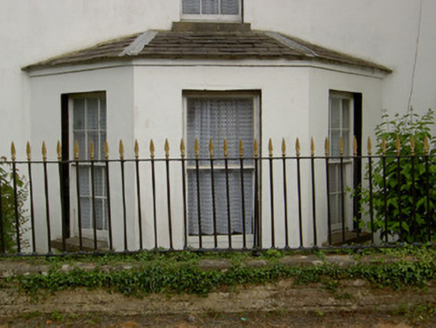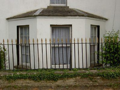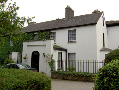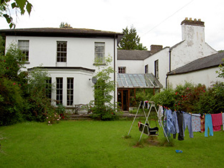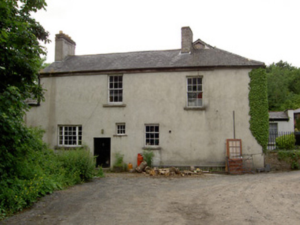 Detached L-plan four-bay two-storey house with attic, built c.1820, having multiple-bay elevation to east side including slightly lower return, three-bay two-storey wing attached to south-west corner of rear, single-storey outbuilding attached to south end of return, single-storey outbuilding attached to latter, and with conservatory between return and wing. Hipped slate roofed porch to front. Hipped slate roofs, pitched to return, with rendered brick chimneystacks. Square-headed timber sliding sash windows throughout, three-over-six pane to first floor, six-over-six pane to ground floor, side walls of porch and to attic level of west gable. Hipped slate canted-bay window to west elevation of main block with one-over-one pane window flanked by six-over-six pane windows. West elevation of wing has blind openings, south elevation has six-over-six pane windows to first floor and six-over-nine pane to ground floor, flanking single-storey flat-roofed canted-bay window having triple four-over-six pane lights, with continuous sill and having moulded cornice to eaves. East elevation has irregular fenestration, with timber casement window and timber sliding sash three-over-six pane and six-over-six pane windows, one of latter being tripartite. All windows have limestone sills. Round-headed door opening to porch, with timber panelled door, spoked timber fanlight and limestone step. Cut limestone coping to parapet of porch, with panel beneath, porch being flanked by spearhead cast-iron railings on rubble limestone and sandstone plinth walls. Square-headed door timber battened half-door to east elevation. Two-storey barn to south of site with hipped slate roof, now raised and converted into apartments.