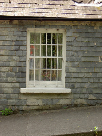 The fenestration of this house is typical of architecture dating to the mid-nineteenth century. The slate-hung addition is a notable feature. Common to this area, this method of weather proofing allows the wall to breathe, while simultaneously protecting it. This house forms part of a group of houses built along Moore's Road in the mid-nineteenth century.