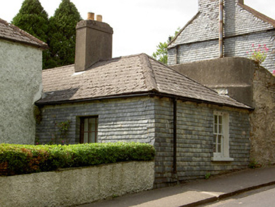 Detached three-bay two-storey house, built c.1840, with single-storey addition set at right angle to front. Hipped artificial slate roofs, with terracotta ridge tiles, rendered chimneystacks and cast-iron rainwater goods. Pebbledashed walls to main block, with slate-hung walls to addition. Square-headed timber sliding sash windows, three-over-six pane to first floor and six-over-six pane to ground floor, barred to road elevation of addition. Square-headed timber panelled door with glazed top panels and having limestone step. Pebbledashed boundary wall to garden to front of site, with wrought-iron pedestrian gate. Side entrance to south with replacement metal gate.