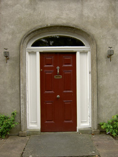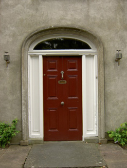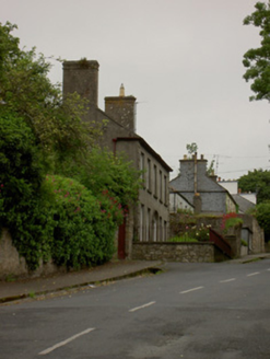 Detached double-pile five-bay two-storey house, built c. 1840. Pitched slate roof with rendered chimneystacks and cast-iron rainwater goods. Smooth rendered walls with quoins. Square-headed timber sliding sash one-over-one pane windows with limestone sills. Elliptical-headed door opening with moulded render surround, timber panelled door with panelled timber surround and plain fanlight. Segmental-arched carriage entrance to south with red brick voussoirs and corrugated-iron gate. Two-storey outbuilding to rear with corrugated-iron roof having eaves course and camber-headed windows with brick voussoirs. Wrought-iron railings to front of site on rendered plinth walls, with similar pedestrian gate.