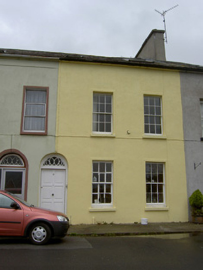 Terraced two-storey house with attic, built c. 1830, having two-bay first floor and three-bay ground floor. Pitched slate roof with rendered chimneystack and cast-iron rooflights. Painted rendered walls with square-headed openings having six-over-six pane timber sliding sash windows, stone sills and render surrounds. Round-headed entrance opening with replacement timber door, stone plinth blocks and decorative fanlight.