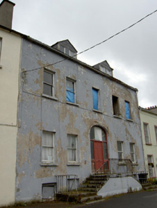 Terraced five-bay two-storey over half-basement house, built c. 1820, with dormer attic, now disused. Pitched slate roof with cast-iron rainwater goods, rendered chimneystacks and dormer windows. Painted smooth-rendered walls. Square-headed openings with stone sills, most retaining one-over-one pane timber sliding sash windows. Timber casement windows to dormers. Pointed arch attic window to north gable. Elliptical-arched entrance opening with hood moulding and having replacement timber door and glazed surround, approached by symmetrical flights of limestone steps with cast-iron railings.