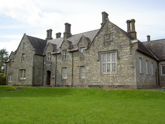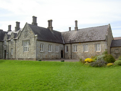 Detached Tudor Revival style former model school, dated 1848, now in use as school and civil building. Seven-bay single-storey with dormer floor front block having projecting gable-fronted bays flanking three-bay part having entrance, with three-bay east elevation, attached to two four-bay single-storey blocks, one two-pile, and both set back perpendicular to front block, latter with lower two-bay link. Two further single-storey blocks perpendicular to rear of front block, one with perpendicular wings. Pitched slate roofs with cut limestone and rendered chimneystacks, gabled dormer windows, limestone copings, finials and cast-iron rainwater goods. Snecked limestone walls with dressed limestone quoins, plinth and limestone plaques. Square-headed window openings with chamfered limestone block-and-start surrounds and six-over-six timber sliding sash windows to front and west elevations, with timber casement windows elsewhere and having timber mullioned-and-transomed window with label moulding to eastern projecting gable with limestone relieving arch and decorative limestone plaque over. Similar boarded latter windows to gables in east elevation, one with quatrefoil vent and date plaque over. Tudor-arched main entrance with chamfered limestone surround and carved limestone label moulding, timber panelled door, limestone steps, cast-iron bootscrape and having decoratively-carved plaque over. Square-headed door openings elsewhere with timber battened doors, limestone surrounds and steps.