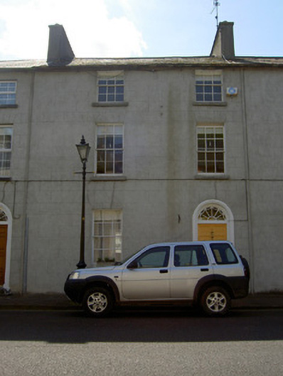 This house is part of a terrace designed by renowned Clonmel architect William Tinsley for Charles Riall. It utilises typical Georgian features such as the diminishing windows, round-headed door opening and fanlight and its modest façade is enlivened by the render door surround. The house is enhanced by the retention of its timber panelled door and sash windows.