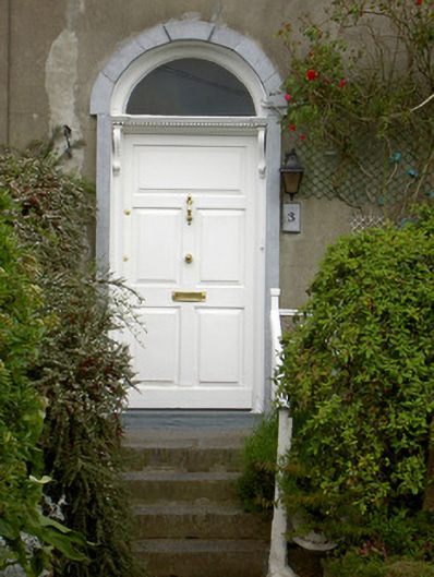 Terraced three-bay three-storey house over half-basement, built c.1835. Pitched artificial slate roof with rendered chimneystacks, eaves course and cast-iron rainwater goods. Lined-and-ruled rendered walls. Square-headed window openings having stone sills and timber sliding sash windows, six-over-six pane to ground and first floors and three-over-three pane to second floor. Round-headed door opening having timber panelled door, dentillated cornice with decorative consoles, plain fanlight, and cut limestone surround with voussoirs and raised keystone, approached by flight of tooled limestone steps with cast-iron railings. Cast-iron gates and railings to site.