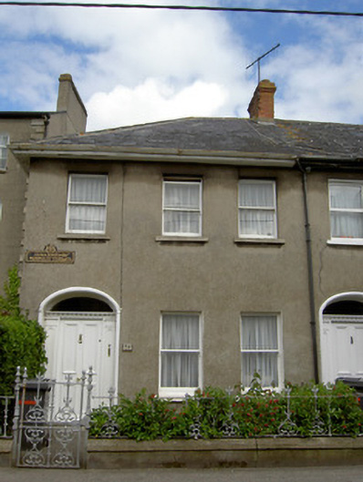 End-of-terrace three-bay two-storey house, built 1897, with two-storey return to rear. Slate roof, hipped to north gable with overhanging eaves, brick chimneystack and cast-iron rainwater goods. Rendered walls with square-headed window openings with limestone sills and one-over-one pane timber sliding sash windows. Elliptical-headed doorway with moulded render surround, plain fanlight, timber panelled door with decorative timber pilasters and dentillated cornice. Ornate cast-iron railings set on rendered plinths with decorative cast-iron gate to site.