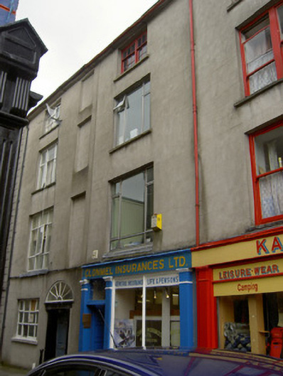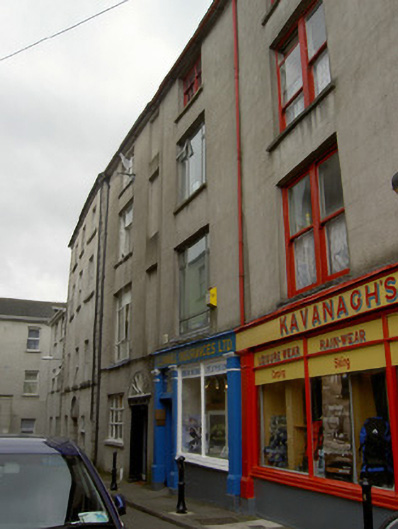 Terraced one and two-bay four-storey house, built c.1815. Now also in use as shop, with timber shopfront to ground floor, and having full-height return to rear. Originally part of three-bay composition with house to south, house divided in two c.1870 and middle bay being shared by both houses. Pitched slate roof with eaves course and cast-iron rainwater goods. Rendered walls, lined-and-ruled to front and roughcast to rear. Square-headed openings having limestone sills, having timber sliding sash windows to top floor, bipartite three-over-six pane to front and six-over-two pane to rear. Replacement aluminium and uPVC to middle floors. Shopfront has square-headed door opening with plain over-light and bipartite plate glass window with moulded timber sill, flanked by render pilasters, with rendered stall riser and timber fascia and cornice.