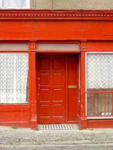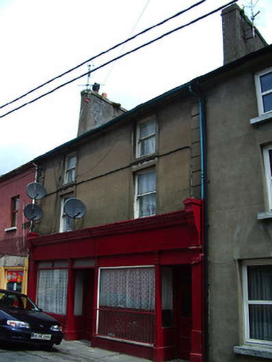 Terraced two-bay three-storey house, built c. 1830, with shopfront and separate access to upper floors. Pitched slate roof with rendered chimneystacks and cast-iron rainwater goods. Unpainted rendered walls ruled-and-lined, render to quoins. Square-headed window openings with render surrounds and sills. Timber sliding sash one-over-one pane windows. Timber and render shopfront to ground floor with moulded cornice, consoles, dentils, fascia board, fluted end pilasters, chamfered panelled intermediate pilasters and rendered stall risers, 'Groceries' incised to west. Square-headed timber framed display window with overlight having glazing bar, replacement aluminium display window to east with wrought-iron window guard. Recessed centrally-placed entrance porch with overlight, tiled pavement and timber panelled double leaf doors. Recessed separate entrance to upper floors with glazed timber panelled door and overlight and tiled pavement. Lean-to extension to rear yard.