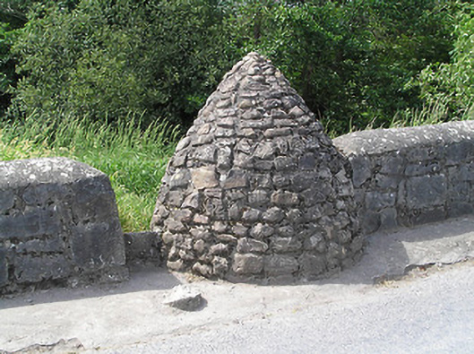 The simple form of this structure reflects its functional nature, and the corbelling technique used in its construction is long established in Ireland. It creates an interesting contrast to the more formally planned and executed bridge to the north. Wells once played an important social and functional role in the nineteenth and twentieth centuries providing a communal water source. Situated prominently on Bridge Road, the well serves today as a reminder of this era and adds visual interest to the southern approach road to Ballyporeen.