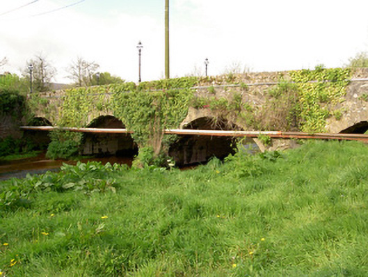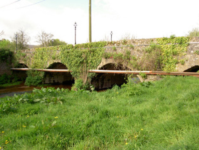Four-arch flat road bridge over River Tar, built c. 1800. Rubble limestone walls with dressed limestone voussoirs, keystones and plinth, having V-cutwaters up and downstream. Recent cast-iron light fittings and overflow holes to parapet walls. Appears to have been widened.