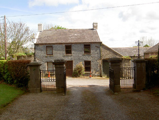 Detached three-bay two-storey former gate lodge, built c. 1810, with single-storey lean-to extension fronted by carriage arch to south. Pitched slate roof with brick eaves course, rendered chimneystacks and cast-iron rainwater goods. Slate-hung walls with lozenge devices. Square-headed openings with one-over-one pane timber sliding sash windows and replacement timber door. Segmental brick carriage arch with timber battened doors. Outbuildings to south of site.