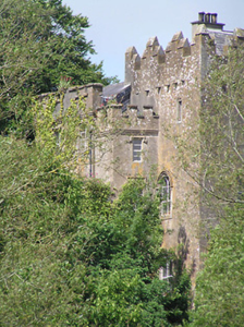 Detached irregular-plan multi-period country house, comprising surviving south circuit of medieval bawn with square-plan tower house built c.1450 at southeast angle and with early thirteenth-century keep at northeast angle, and having eighteenth and nineteenth-century additions. Tower house is four-storey with two-bay side elevations and has four-bay three-storey block of c.1750 added to north side, having slightly advanced west bay, with further two-storey block to west presenting one-bay to front elevation and two to rear, and with lower canted single-bay two-storey entrance link between these later blocks, link and west block being built c.1885. Link block echoed in rear elevation by angular one-bay three-storey block. Twelve-bay single-storey flat-roofed block to east side east block, running on northeast to southwest axis. Pitched slate roofs with stepped crenellations to tower house and simpler crenellations elsewhere. Lines of dripstones to south and east elevations of tower house, and moulded course to base of slightly projecting parapets of projecting part of main later block and to west block. Crowstep parapet to east elevation of four-bay block, simple crenellations to west end and stepped battlements to western block. Rubble limestone chimneystack to four-bay block, with brick quoins, brick and rendered elsewhere, with cast-iron rainwater goods. Single-storey block has parapet with sloping coping and stepped crenellations to centre and ends, with moulded string course to base of parapet. Coursed rubble and dressed limestone front elevation to four-bay block, rubble limestone to east elevation of tower house and rendered to other elevations, and snecked dressed limestone to front elevation of west block. Square-headed window openings, having render label-mouldings to south and west elevations of tower house and front and rear elevations of west end of four-bay block and of west block. Pointed single-light and double-light pointed windows to south and east elevations of tower house, with chamfered limestone surrounds, ogee-headed window and pointed window with hood-moulding to west elevation and slit window to east elevation. Chamfered limestone surrounds to east elevation and east end bays of front elevation of four-bay block, with timber sliding sash one-over-one pane windows, some double. Chamfered limestone surrounds to west block. Timber casement windows to east end of front elevations of blocks and metal casements elsewhere. Mullioned timber casement windows to single-storey block. Pointed-arch entrance door opening with studded timber battened door and metal strap hinges. Ruined cylindrical keep of early thirteenth-century date, with semi-circular staircase annex to northeast of site. Rendered staircases to stepped gardens. Octagonal-plan rendered piers with decorative wrought-iron gates, and rendered and crenellated rubble limestone walls to site entrance.