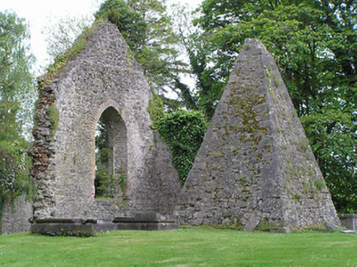 Detached Board of First Fruits style Church of Ireland church, built 1829, with four-bay nave elevation, four-stage tower to west, chancel to east, and transept to north incorporating vestry. Pitched slate roofs with carved limestone copings, cast-iron rainwater goods, and having cut limestone chimneystack to vestry. Cut and carved limestone finials, crocketed pinnacles and crenellations to tower. Snecked limestone walls with cut limestone plinth and with cut limestone corner buttresses and string courses to tower and chamfered cut limestone openings with hood mouldings. Pointed arch window openings, paired to third stage of tower, and Tudor-arched to ground stage of tower, all with replacement uPVC windows. Tudor-arched door opening to tower end of nave and pointed arched to tower, latter with carved limestone door surround comprising roll mouldings and label moulding with trefoil motif to spandrels, both with dressed limestone steps and having timber vertically-panelled double doors to nave and replacement timber to tower. Graveyard to site. Roughly-dressed stone ha-ha and cast-iron pedestrian gate flanked by monolithic limestone piers to south boundary. Carved limestone piers with steel gate to north-west entrance, and dressed granite piers with double-leaf steel gates to road entrance. Disused walled graveyard to south-east, disused graveyard with pyramidal monument and remains of ruin of church to south. Ruins of Cistercian abbey, built c. 1200, to south-west.
