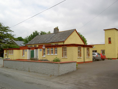 Detached school building comprising five-bay double-height main block, dated 1900, and having symmetrical multiple-bay single-storey extension to front comprising porch, flanking single-bay sections and advanced lateral wings with two-bay sides, built c.1960, with additional three-bay block having two-stage water tower linked by corridor to rear, built c.1990. Pitched slate roof to main block with dressed limestone chimneystack and cast-iron rainwater goods. Flat roof to porch and wings with raised flat roofs to interconnecting bays. Pebbledashed walls with smooth rendered plinth. Date plaques to either side of porch. Square-headed single and grouped window openings to porch and wings with timber sliding sash six-over-six pane windows, timber casement twelve and six-pane windows and some replacement uPVC windows, all having rendered sills. Square-headed door opening with replacement timber battened door.