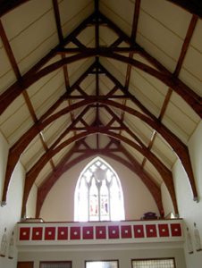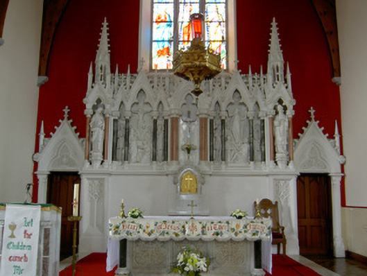 Influences of the Gothic Revival are apparent in the simple external form of this church through features such as the pointed arch openings. The use of different colours of sandstone in its construction enhances the visual appeal of the building's exterior. The open truss roof has been retained to the interior as has the highly ornate sculpted reredos, the latter a feature of considerable artistic merit.