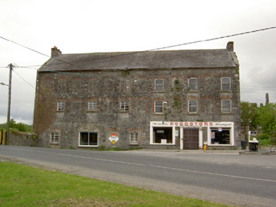 Detached twelve-bay three-storey former mill, built c. 1800, with shopfront to east end of ground floor and two single-storey lean-to extensions to rear. Now disused. Pitched slate roof with terracotta ridge tiles, redbrick chimneystacks, cast-iron rainwater goods and dressed limestone eaves course and copings. Rubble limestone walls with dressed limestone quoins. Segmental-headed window openings, alternately blocked, with red brick dressings, one-over-one pane timber sliding sash windows to east end and metal casements to west. Segmental-headed opening in ground floor now window. Shopfront to ground floor comprising central door flanked by display windows with smooth render fascia and surrounds to openings.