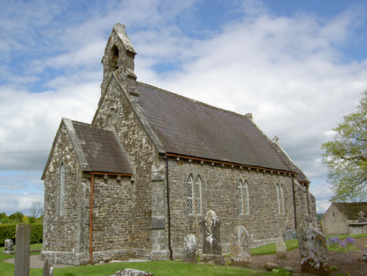 Detached Church of Ireland church, built 1846-7, with three-bay nave elevations, chancel to east, entrance porch to west and sacristy to north. Pitched slate roof with ridge tiles, cut limestone copings, cast-iron rainwater goods and limestone eaves corbels. Cross finial to east gable and belfry with cast-iron bell to west gable. Roughly dressed sandstone walls with dressed limestone stepped corner buttresses, quoins and plinth course cappings. Chamfered cut limestone surrounds to all openings. Paired lancet windows to nave and single lancet to porch, with lattice glazing, three pointed arch windows to east elevation with stained glass and trefoil window to west gable. Shouldered door opening to sacristy with limestone steps and replacement timber door with cast-iron strap hinges. Pointed arch door opening to porch with block-and-start limestone surround having dressed voussoirs to arch and replacement timber door under hood-moulding. Recumbant and upstanding grave markers to graveyard. Rubble stone gates piers with wrought-iron gates to front of site.