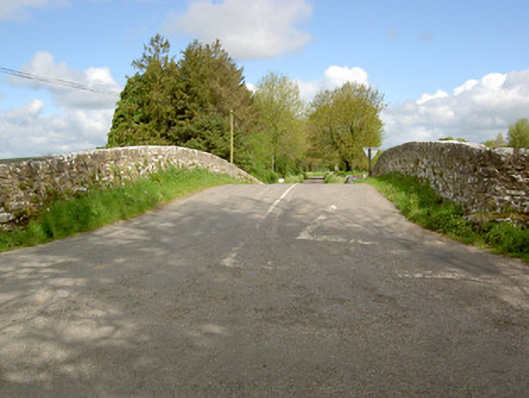Triple-arch hump-back road bridge over King's River, erected c. 1820. Rubble limestone walls with cut limestone voussoirs to segmental arches and limestone capping stones to parapet walls. V-shaped limestone cutwaters to upstream elevation and rectangular-profile projections with concrete additions to downstream.