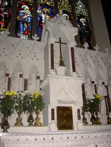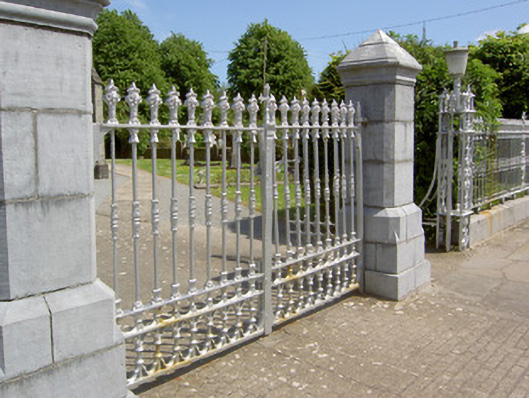 This striking Gothic Revival church was built by architectural partnership O'Malley & O'Rourke. Prominently located on an elevated site at a junction, the church is a focal building whose spire is highly visible in the surrounding landscape. It exhibits a high quality of stone craftsmanship. Its interior is particularly ornate and retains stained glass windows by Harry Clarke and Co. and Mayer and a fine carved reredos. The decorative gateway to the church grounds are also decorative and are an important component of the site.