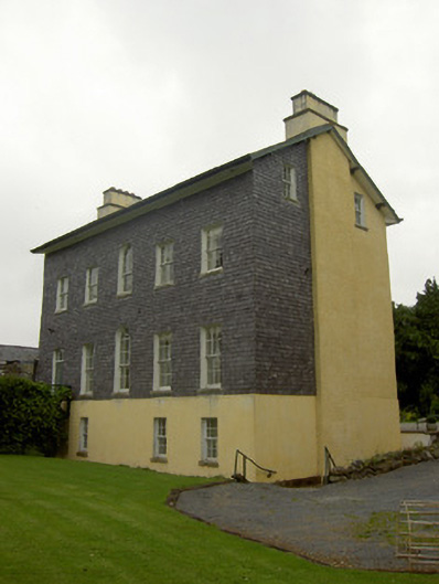 Detached former rectory, built 1776-84, with attic storey and being three-bay two-storey over half-basement to front and five-bay three-storey to rear. Used as rectory until 1885, now in use as house. Pitched slate roof with overhanging eaves and slightly projecting rendered end chimneystacks. Painted roughcast rendered walls, slate-hung to upper floors of rear rear elevation and rear part of gable elevations, having lozenge detail over first floor window. Square-headed diminishing window openings with timber sliding sash six-over-six pane windows, decorative render surrounds and cut limestone sills. Round-headed window openings to central bay of upper floors of rear elevation, having timber sliding sash six-over-six pane windows. Round-headed door opening to front with carved limestone block-and-start surround, timber spoked fanlight and timber panelled door, approached over basement area by flight of cut limestone steps with decorative cast-iron railings. Staircase visible to central bay of rear elevation. Yard to north with random rubble limestone boundary walls, accessed through segmental archway and pointed arched door opening with timber battened door. Outbuilding with pitched slate and corrugated-iron roof and painted roughcast rendered walls. Painted rendered castellated boundary walls with painted rendered piers and decorative cast-iron gates.