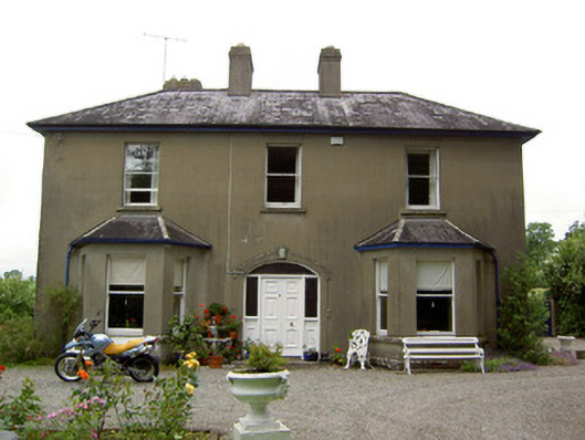 Detached three-bay two-storey house, built c. 1930, with canted end bay windows to ground floor, two-bay two-storey return and lean-to extension with projecting chimneystack to rear. Hipped slate roof with ridge tiles, overhanging eaves, rendered chimneystacks and some uPVC, some cast-iron rainwater goods. Hipped slate roofs with ridge tiles to canted-bay windows. Ruled-and-lined rendered walls. Square-headed window openings with timber sliding sash one-over-one pane windows and rendered sills. Some replacement uPVC windows to rear and gable elevations. Segmental-headed door opening with render surround, double-leaf timber panelled doors having plain fanlight and flanking sidelights. Boundary walls comprising painted rendered balustrades with painted rendered plinth and coping, having painted rendered entrance piers to site.