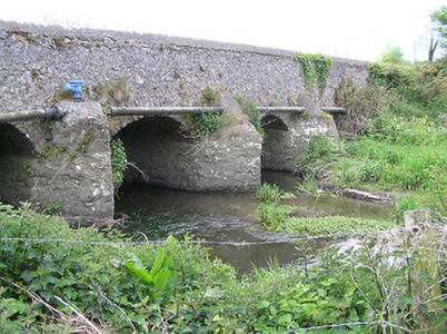 Five-arch road bridge over River Anner, built c. 1800. Rubble limestone walls, having elliptical centre arch flanked by pointed segmental arches, all arches having roughly-dressed voussoirs, and having V-cutwaters to north elevation, render copings to parapets.